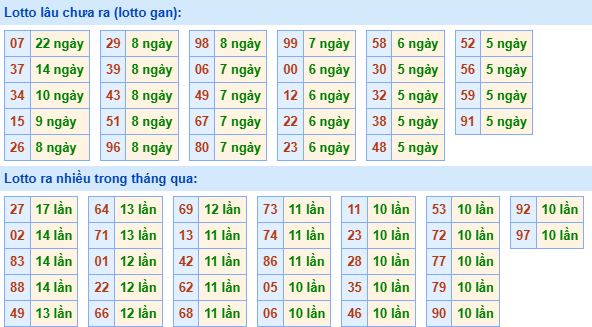 ⇒ Xem bảng tần suất lô tô các cặp số từ 00 đến 99 của đài miền Bắc trong tháng tại: Thống kê lô cặp