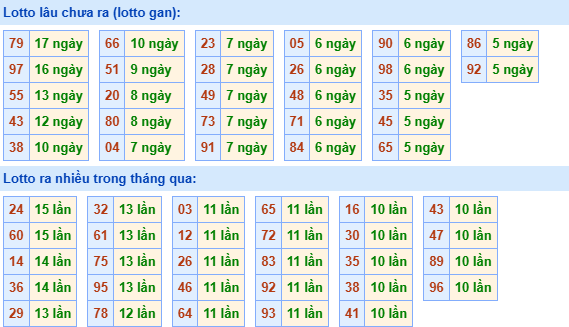 💰 Lô tô gan lâu ra nhất: 79 - 97 - 55