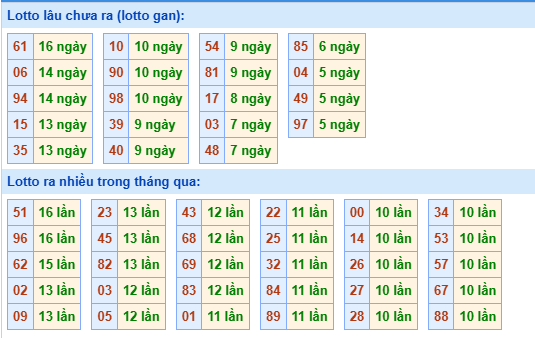 💰 Lô tô gan lâu ra nhất: 61 - 06 - 94