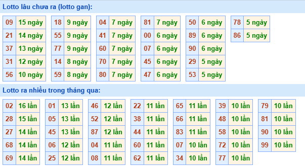 ⇒ Xem bảng tần suất lô tô các cặp số từ 00 đến 99 của đài miền Bắc trong tháng tại: Thống kê lô cặp