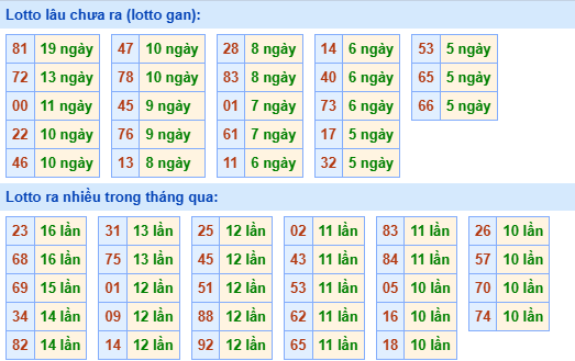 💰 Lô tô gan lâu ra nhất: 81 - 72 - 00