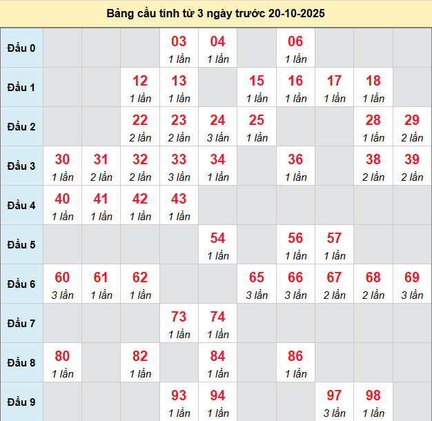 Bạch thủ rơi 3 ngày lô XSDT 20/10/2025