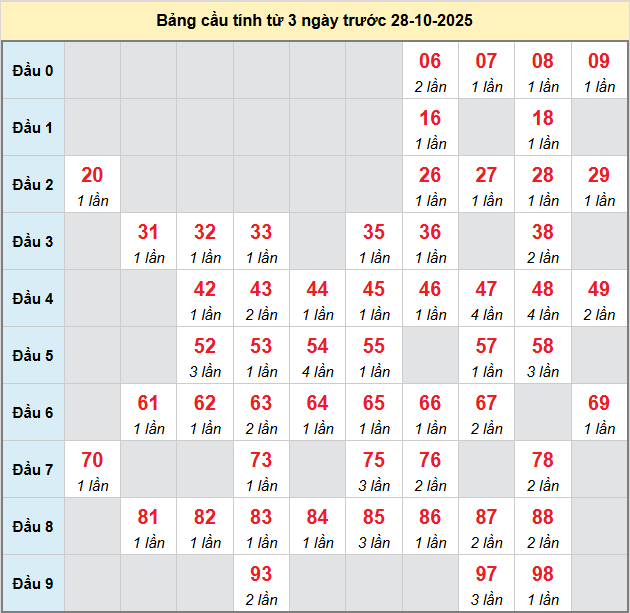 🍀 2. Thống kê lô tô miền Trung ngày 28/10/2025 thứ 3: