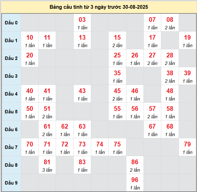 Bạch thủ rơi 3 ngày lô XSDNO 30/8/2025